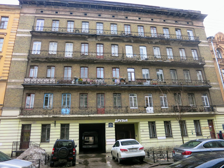 Сейчас я выяснила, что этот жуткий дом построил тот же архитектор, что строил дома для купцов Елисеевых, среди них - Елисеевский магазин на Невском. Мало того, этот ненавидимый мною дом, как оказывается, - один из самых оригинальных домов Петербурга - доходный дом гражданского инженера, искусствоведа и издателя Г.В.Барановского, и строил он его для себя в 1899 году. В доме было паровое отопление, ванные комнаты, лифт (это я знаю. После революции большевики решили, что паровое отопление - это буржуйские замашки, и ликвидировали его. Мама топила печь. Паровое отопление восстановили в 1965 году). Дом отличается от всех сплошным ленточным балконом второго-пятого этажей. Это один из первых домов в городе с такими балконами. Я ходила по балкону и возила за собой трактор на веревочке. Каково же было мое горе. когда трактор упал с балкона и рассыпался! Но мы спустились вниз, собрали его и он снова ездил за мной.